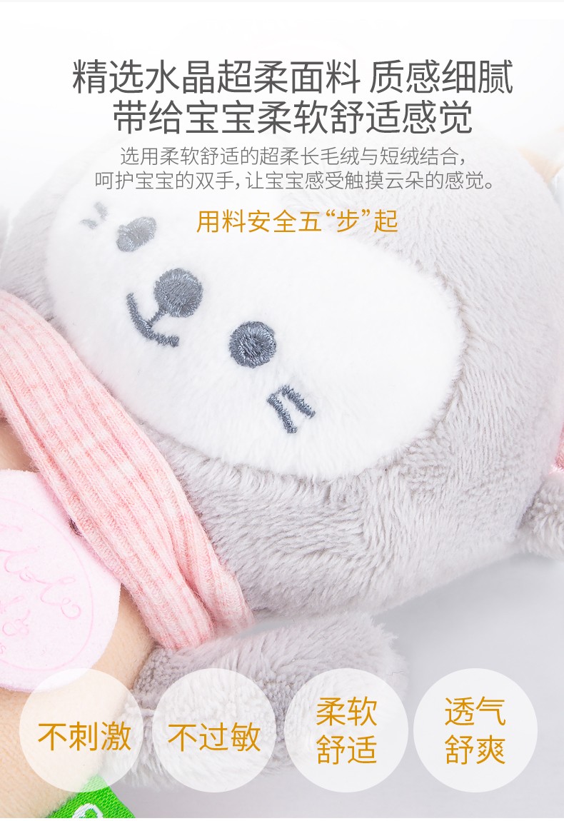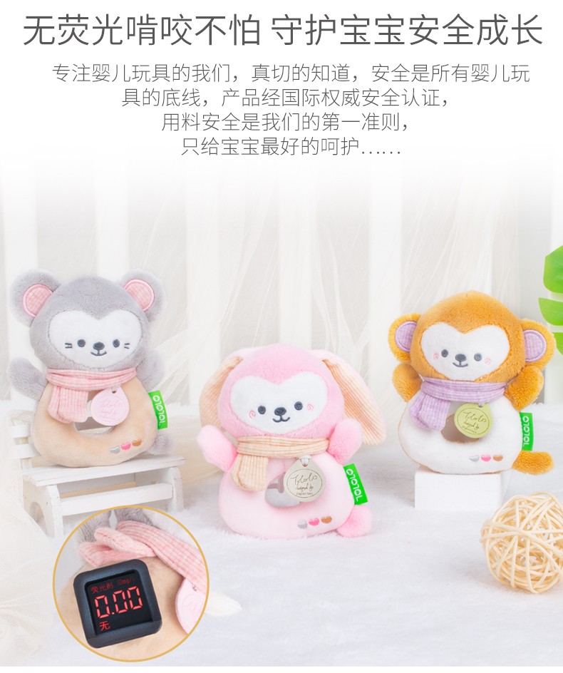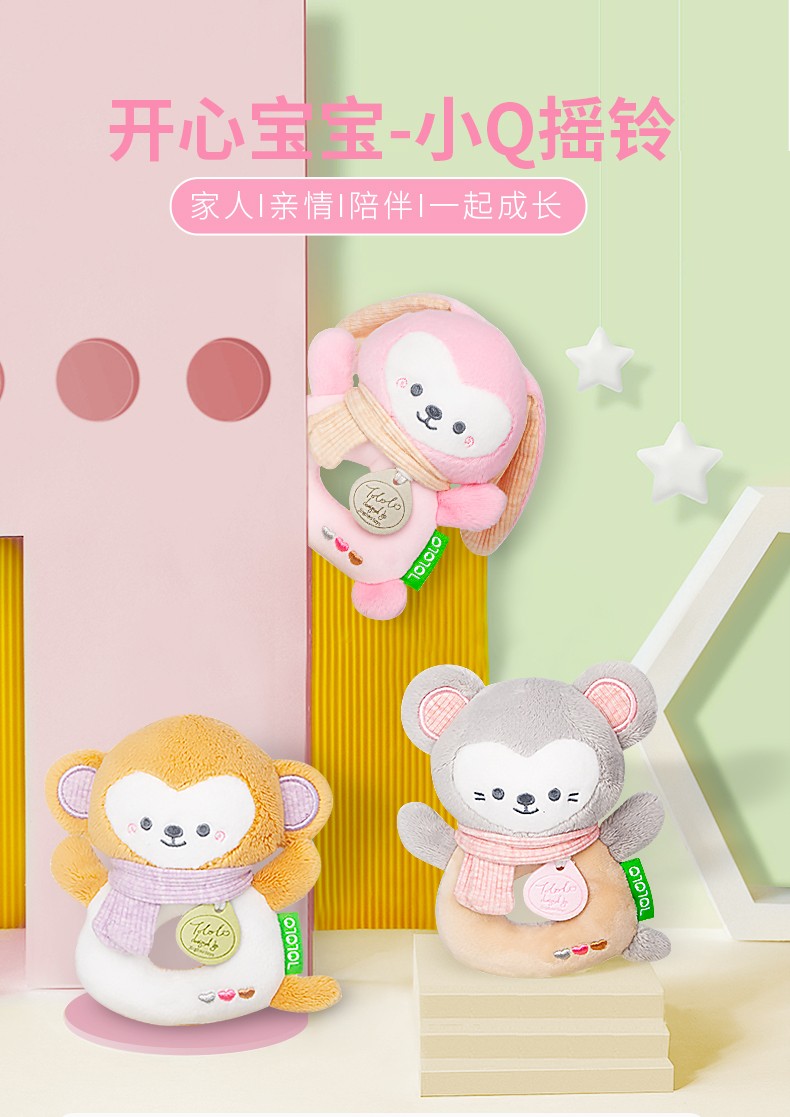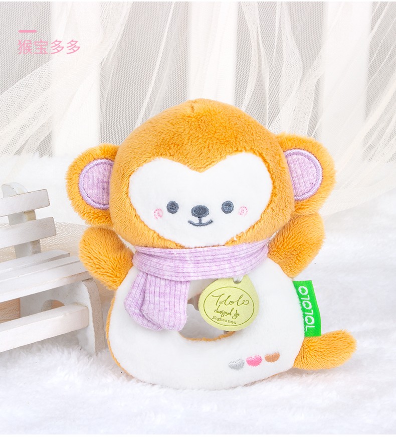 Happy Monkey嬰兒玩具牙膠搖鈴寶寶手搖鈴新生兒玩具毛絨安撫公仔