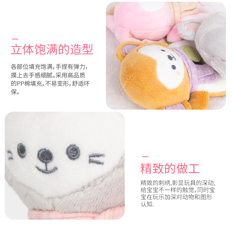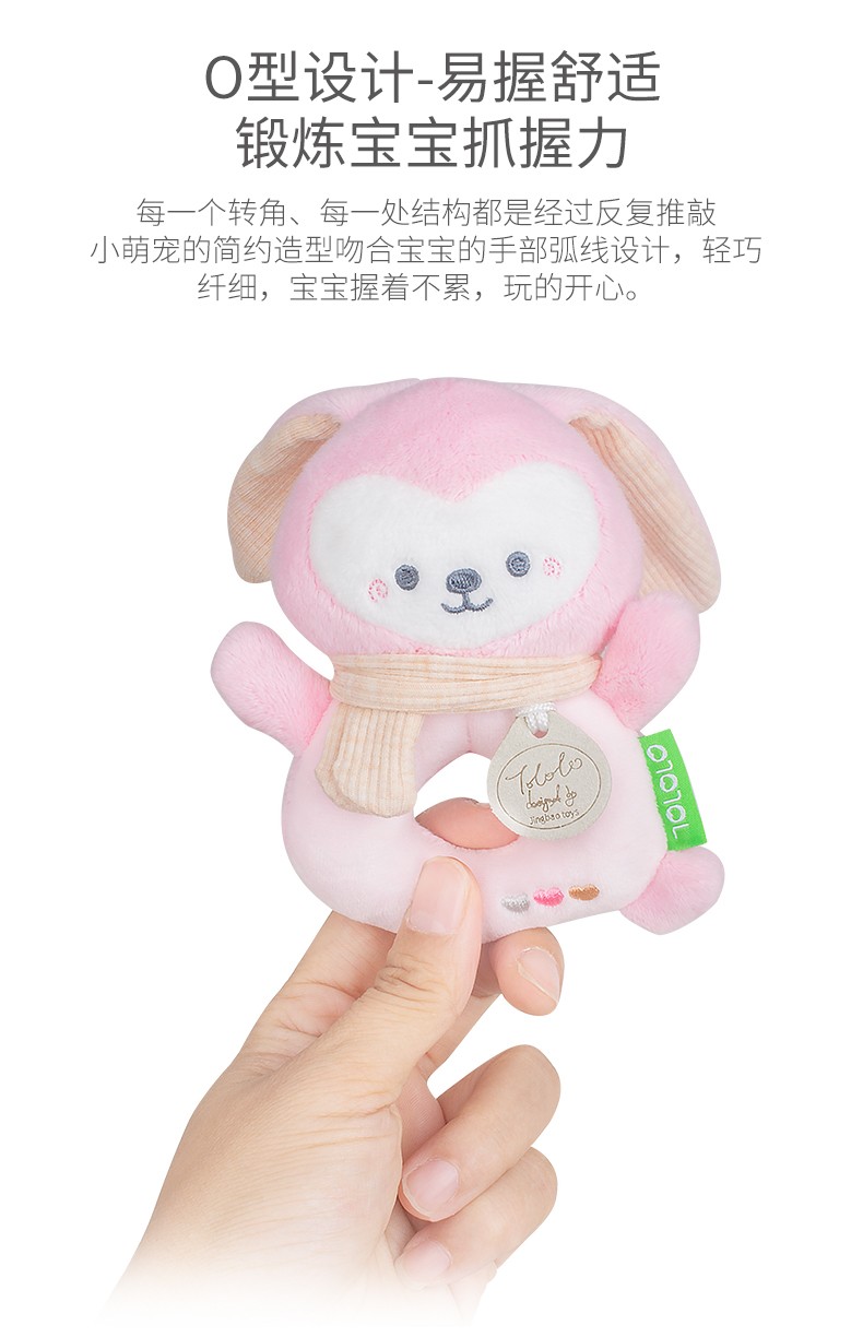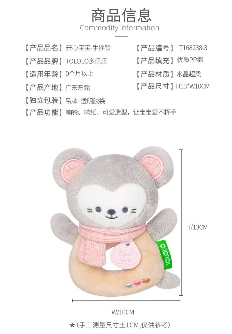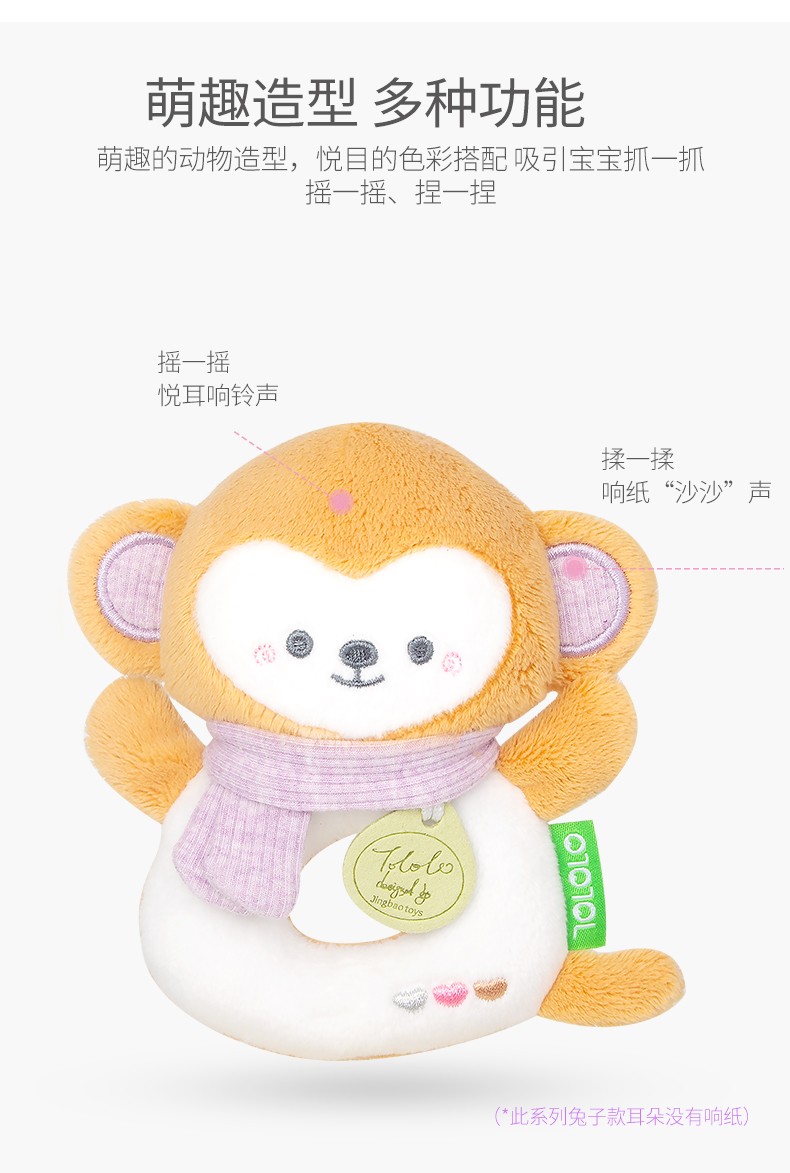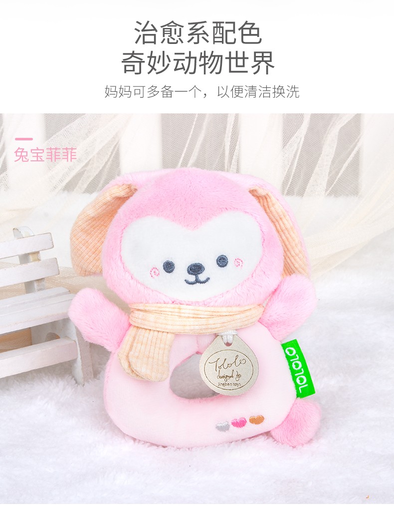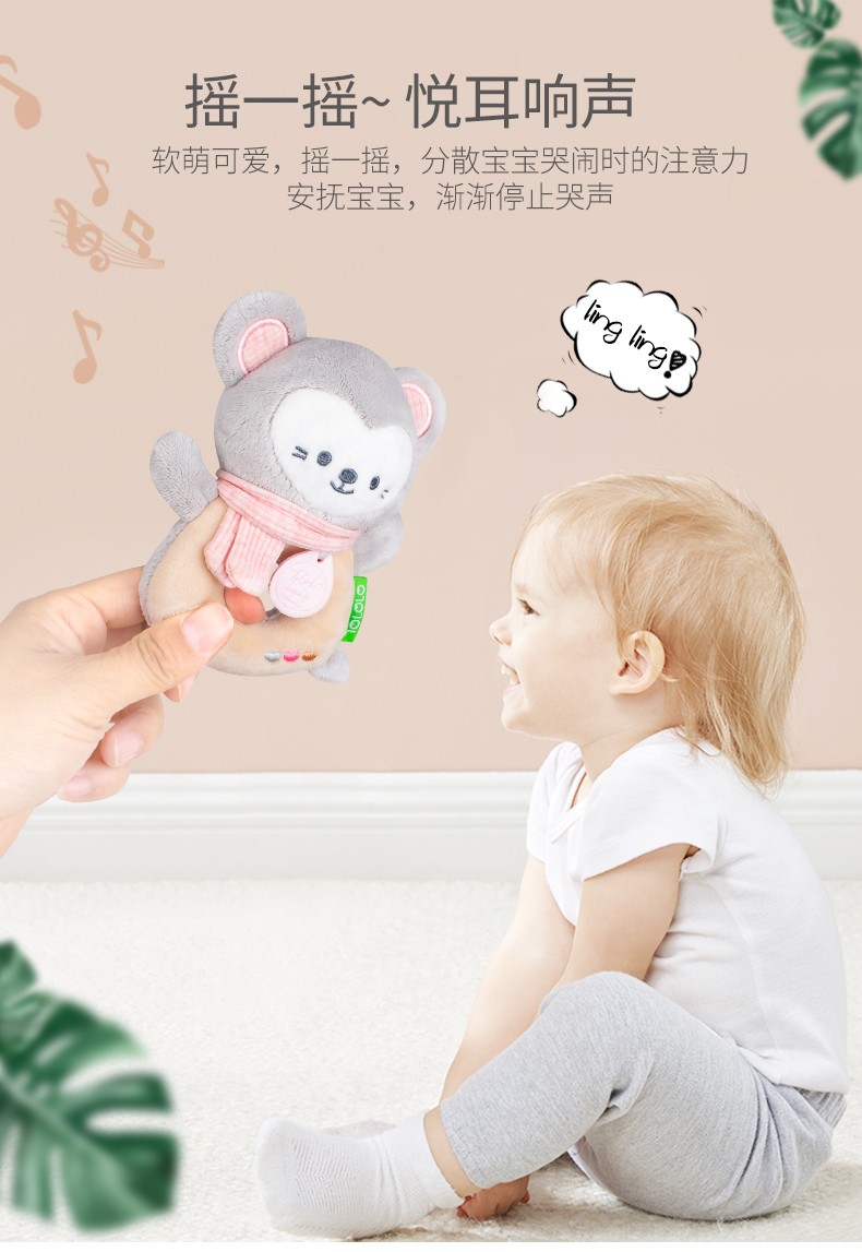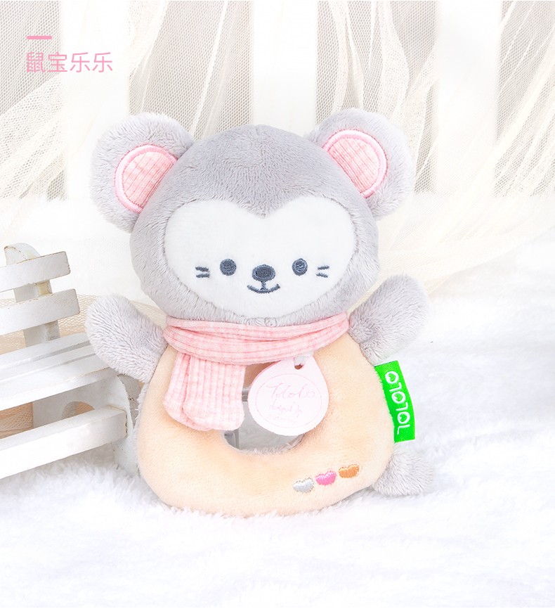 TOLOLO新生兒玩具0-3-6個月毛絨手抓搖鈴1歲寶寶早教嬰兒手搖鈴