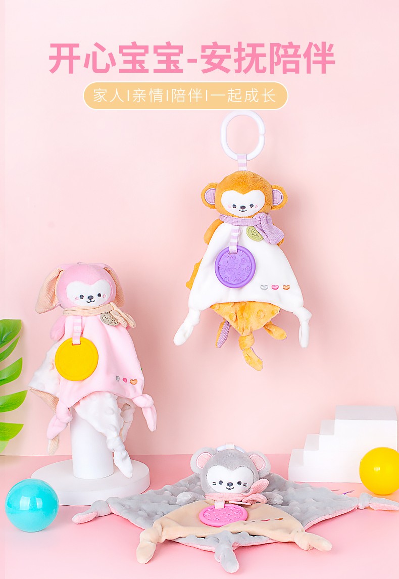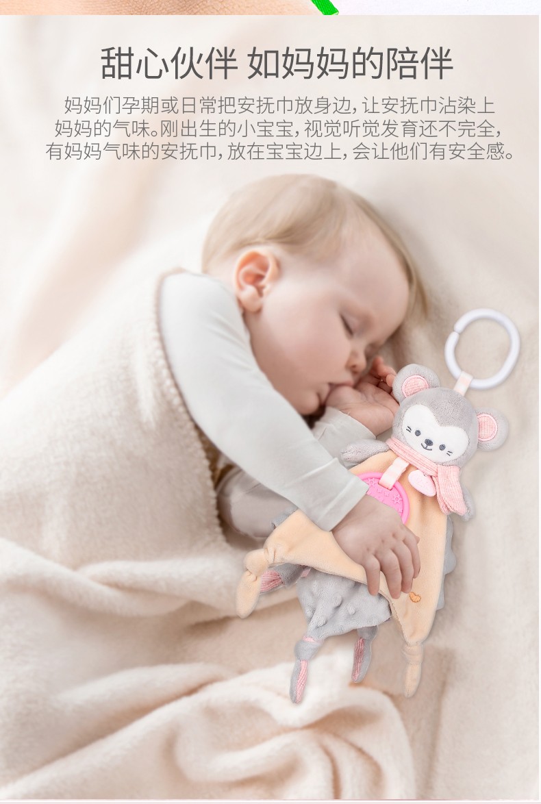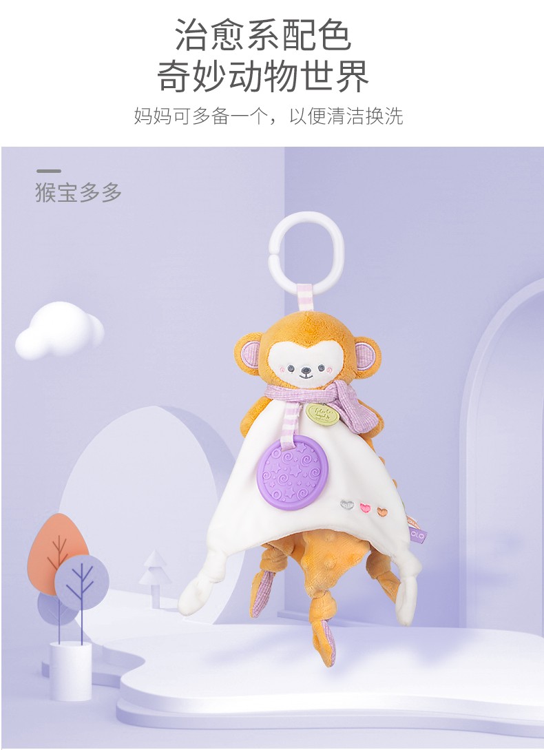 Happy monkey安撫巾嬰兒可啃咬安撫玩偶睡覺公仔寶寶玩具毛絨手偶