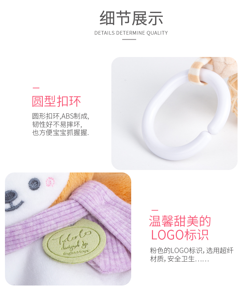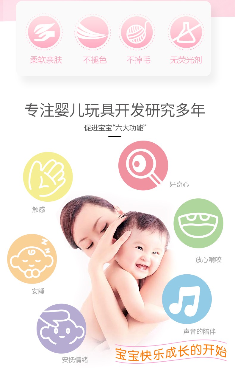 東莞市景寶嬰童玩具用品有限公司是一家集研發、設計、生產和營銷為一體的嬰幼兒玩具及用品有限公司,擁有三百多項自主知識產權的版權和專利,是國內為數不多的真正具有自主品牌的玩具企業。專注研發生產:嬰幼兒毛絨玩具、早教玩具、床鈴玩具、搖鈴玩具、布書玩具、0-1歲寶寶玩具等。18年行業經驗,支持各類嬰兒玩具定制批發,玩具廠家咨詢熱線:0769-86175921