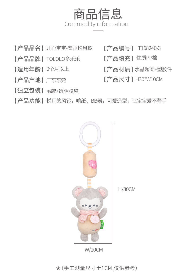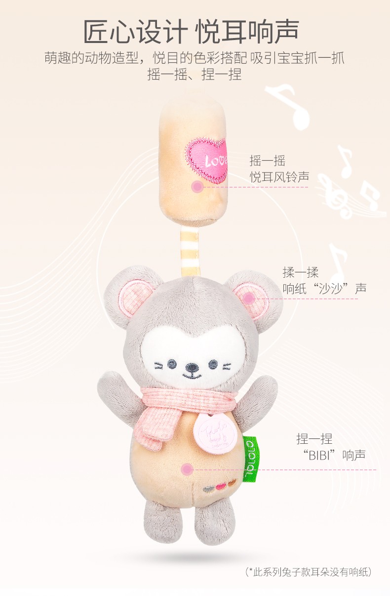 【產(chǎn)品功能】悅耳的風(fēng)鈴,響紙、BB器,可愛(ài)造型,讓寶寶愛(ài)不釋手