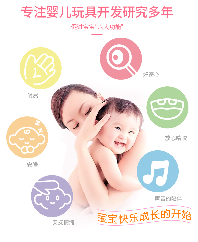 東莞市景寶嬰童玩具用品有限公司是一家集研發、設計、生產和營銷為一體的嬰幼兒玩具及用品有限公司,擁有三百多項自主知識產權的版權和專利,是國內為數不多的真正具有自主品牌的玩具企業。專注研發生產:嬰幼兒毛絨玩具、早教玩具、床鈴玩具、搖鈴玩具、布書玩具、0-1歲寶寶玩具等。18年行業經驗,支持各類嬰兒玩具定制批發,玩具廠家咨詢熱線:0769-86175921