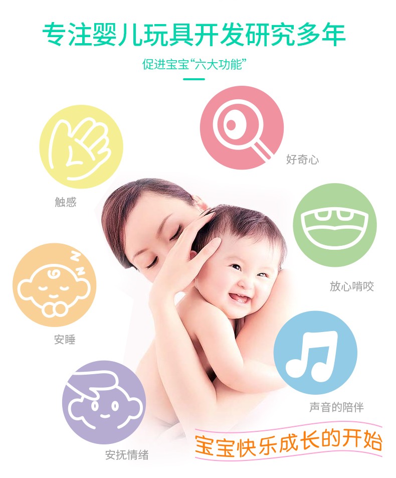 東莞市景寶嬰童玩具用品有限公司是一家集研發、設計、生產和營銷為一體的嬰幼兒玩具及用品有限公司,擁有三百多項自主知識產權的版權和專利,是國內為數不多的真正具有自主品牌的玩具企業。專注研發生產:嬰幼兒毛絨玩具、早教玩具、床鈴玩具、搖鈴玩具、布書玩具、0-1歲寶寶玩具等。18年行業經驗,支持各類嬰兒玩具定制批發,玩具廠家咨詢熱線:0769-86175921