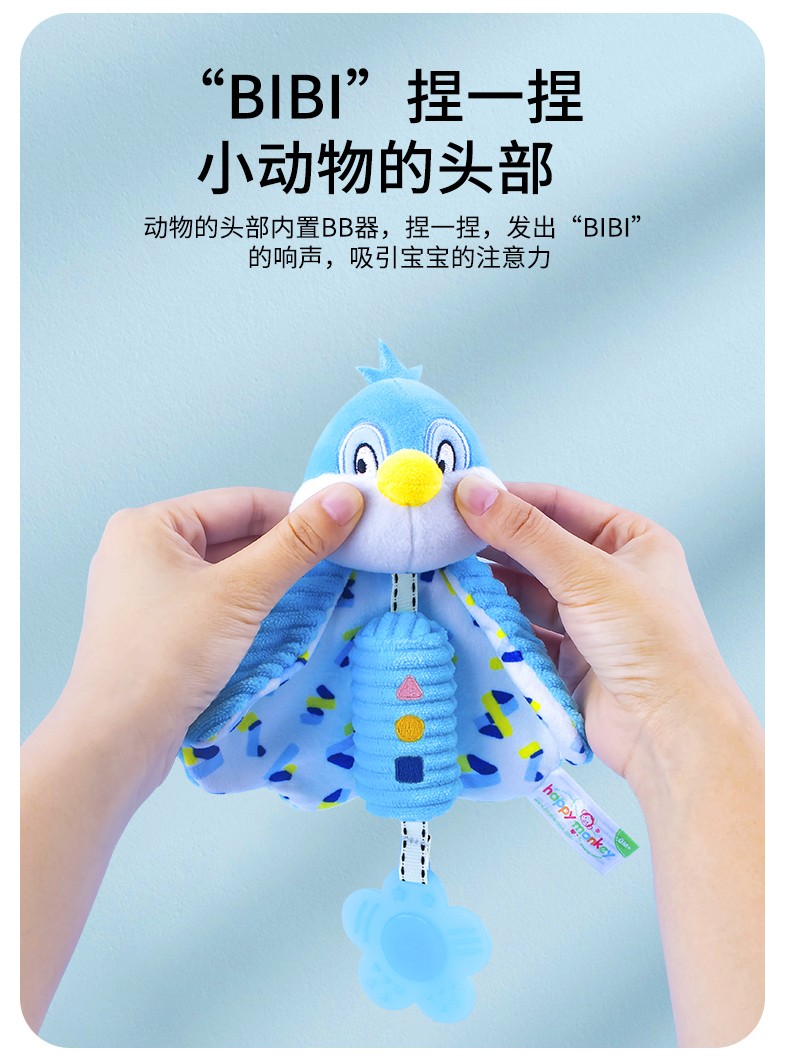"“BIBI”捏一捏,小動物的頭部:動物的頭部內置BB器,捏一捏,發出“BIBI”的響聲,吸引寶寶的注意力