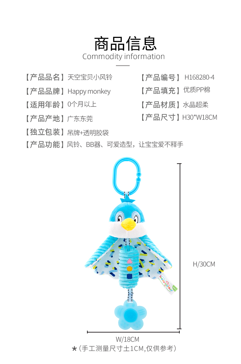 HappyMonkey嬰兒玩具0-3歲早教車床掛天空系列毛絨安撫創意小風鈴的好處: