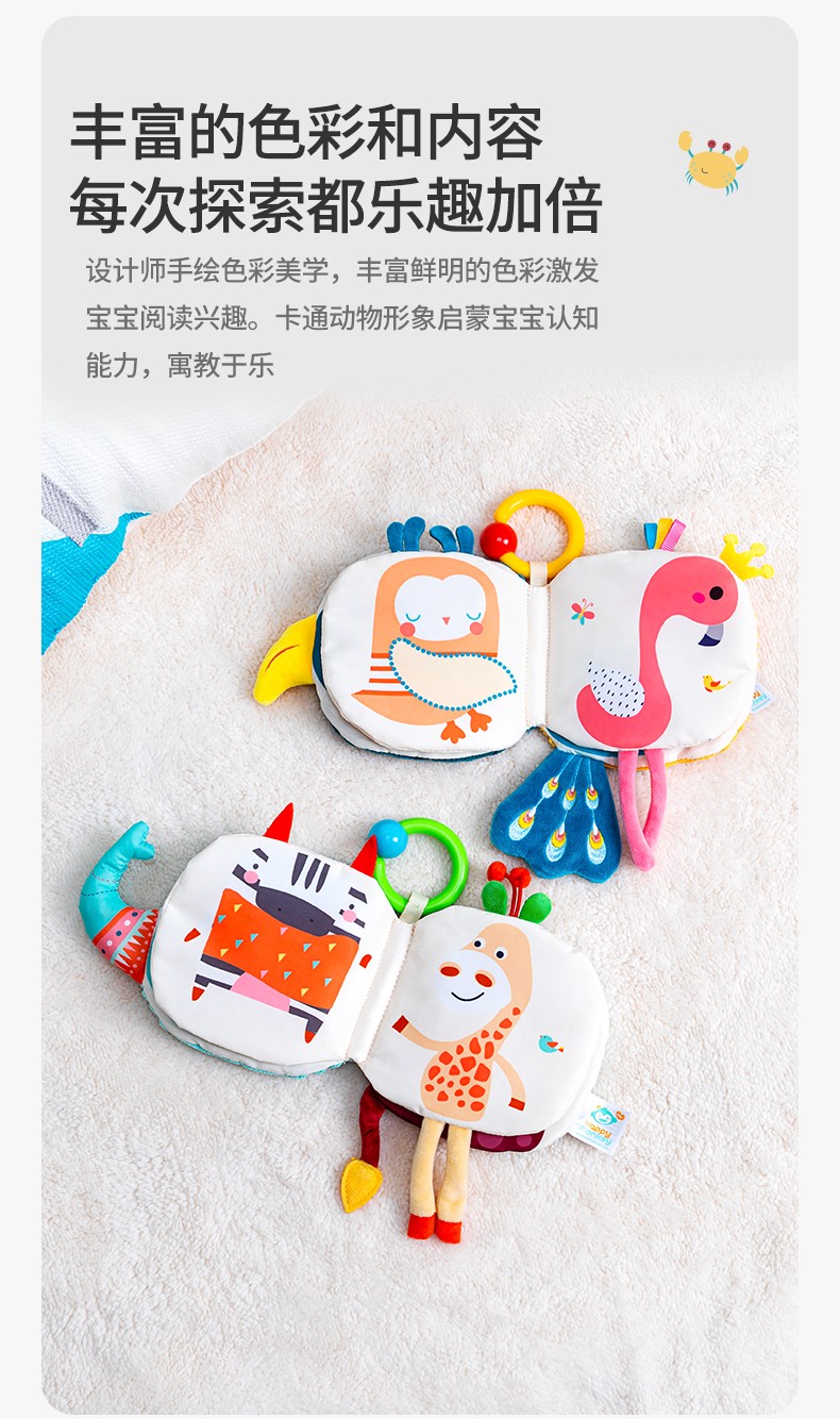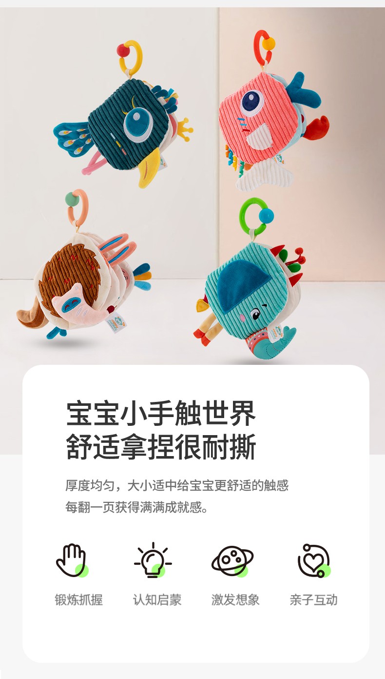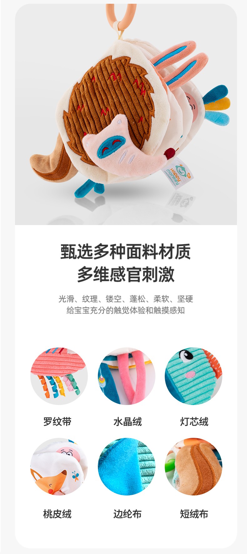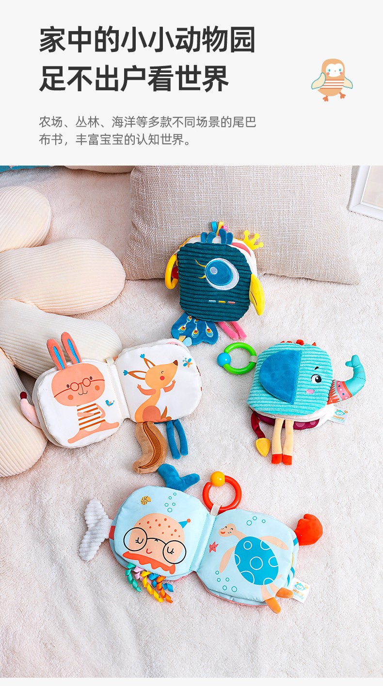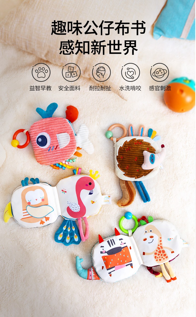 Happy monkey嬰兒早教布書(shū)立體撕不爛可啃咬6月寶寶認(rèn)知益智玩具