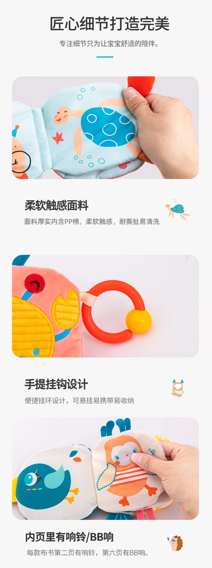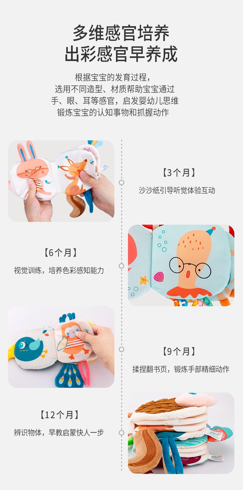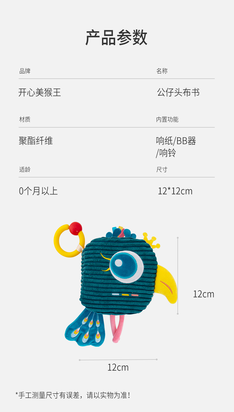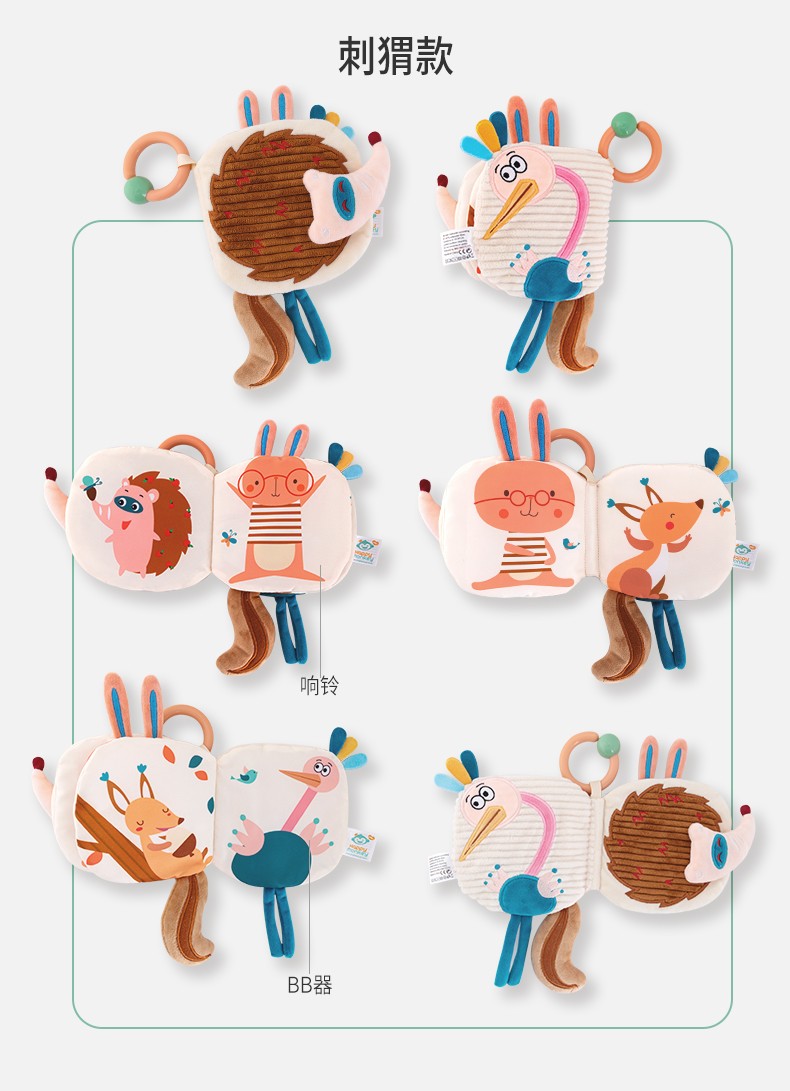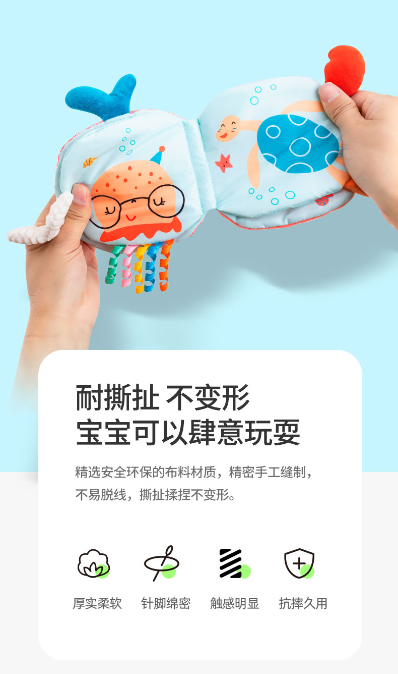 Happy monkey嬰兒早教布書(shū)立體撕不爛可啃咬6月寶寶認(rèn)知益智玩具